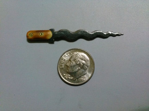The items here currently reside in our personal or other private collections. If you are interested in obtaining one of Malachi's miniature knives or other accessories please reach out to us to discuss commissioning a custom piece.